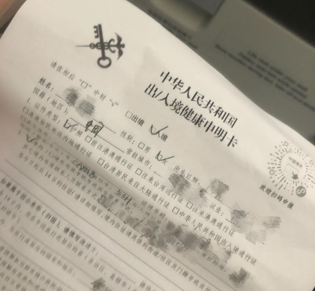 飞机落地前,机组工作人员会发一张出入境健康申明卡,乘客需要填写个人信息以及健康状况。入境也是比较漫长的过程。从飞机落地到出机场经历了三个多小时,过程中多次测量体温。